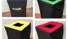 Taking that concept one step further, was to provide guests with the opportunity to ‘dispose of the disposables’ themselves, thereby reducing the staff costs. The solution was to dress Wheelie Bins in a manner that made them presentable in a public environment, and so the birth of Wheelie Bin Covers….